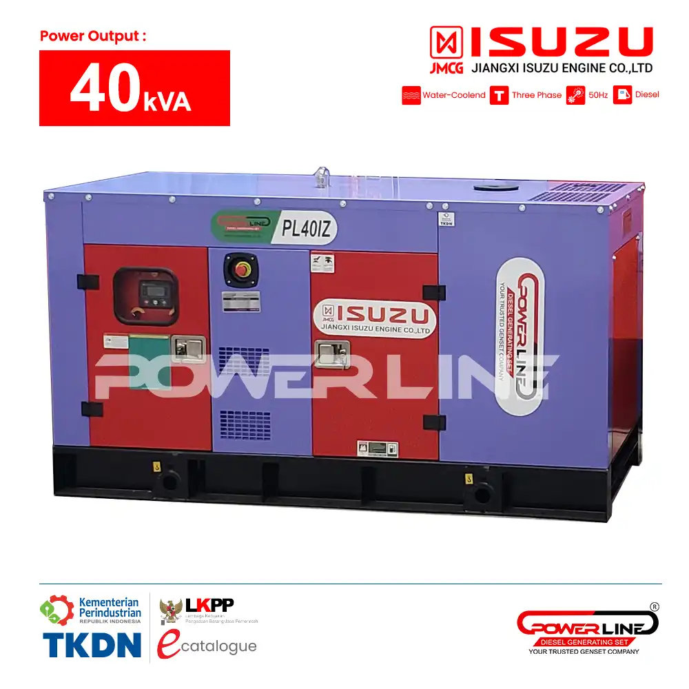 Genset seri JE493ZLDB-02 (PL 40 IZ) dari Powerline Genset mengadopsi mesin Isuzu Jiangxi, yang dibuat oleh Jiangxi Isuzu Motors Co, Ltd. Powerline adalah salah satu distributor genset Isuzu yang langsung diambil dari produsen utama mesin bertenaga menengah di Cina. Genset Isuzu banyak digunakan untuk ladang minyak, kereta api, metalurgi, pembatuan (petrifikasi), kapal angkatan laut, kapal penangkap ikan, catu daya normal, daya cadangan, dll.